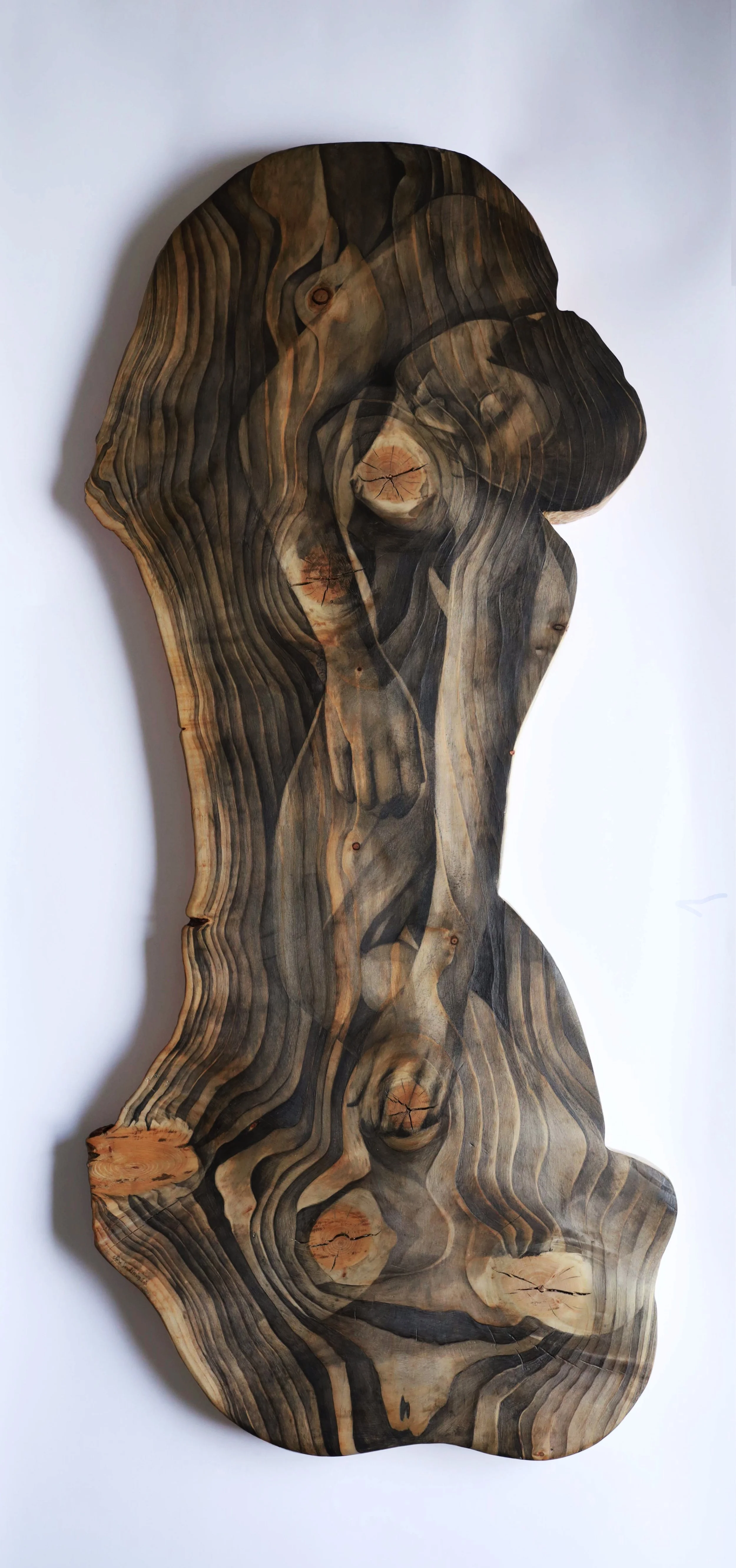 Pencil drawing on spruce timber.